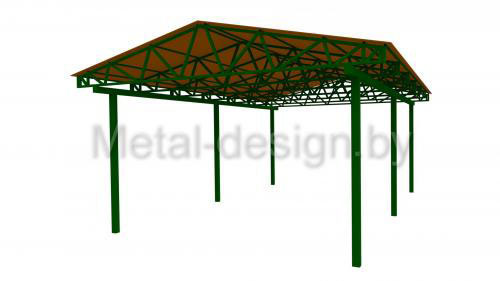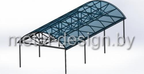 Навес для авто со сварными арочными фермами
