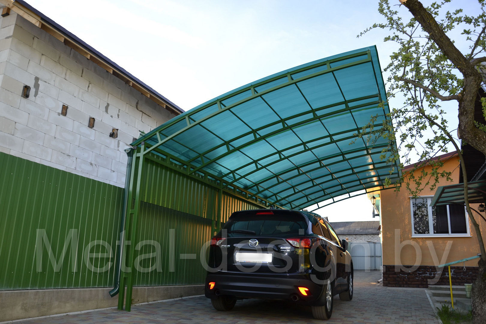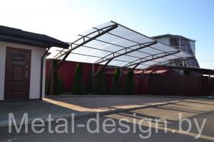 Данный навес подходит для кровли из сотового и монолитного поликарбоната.