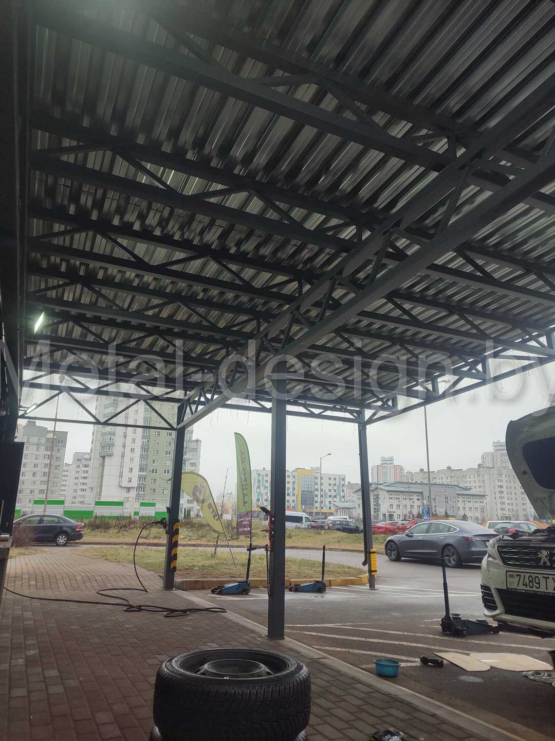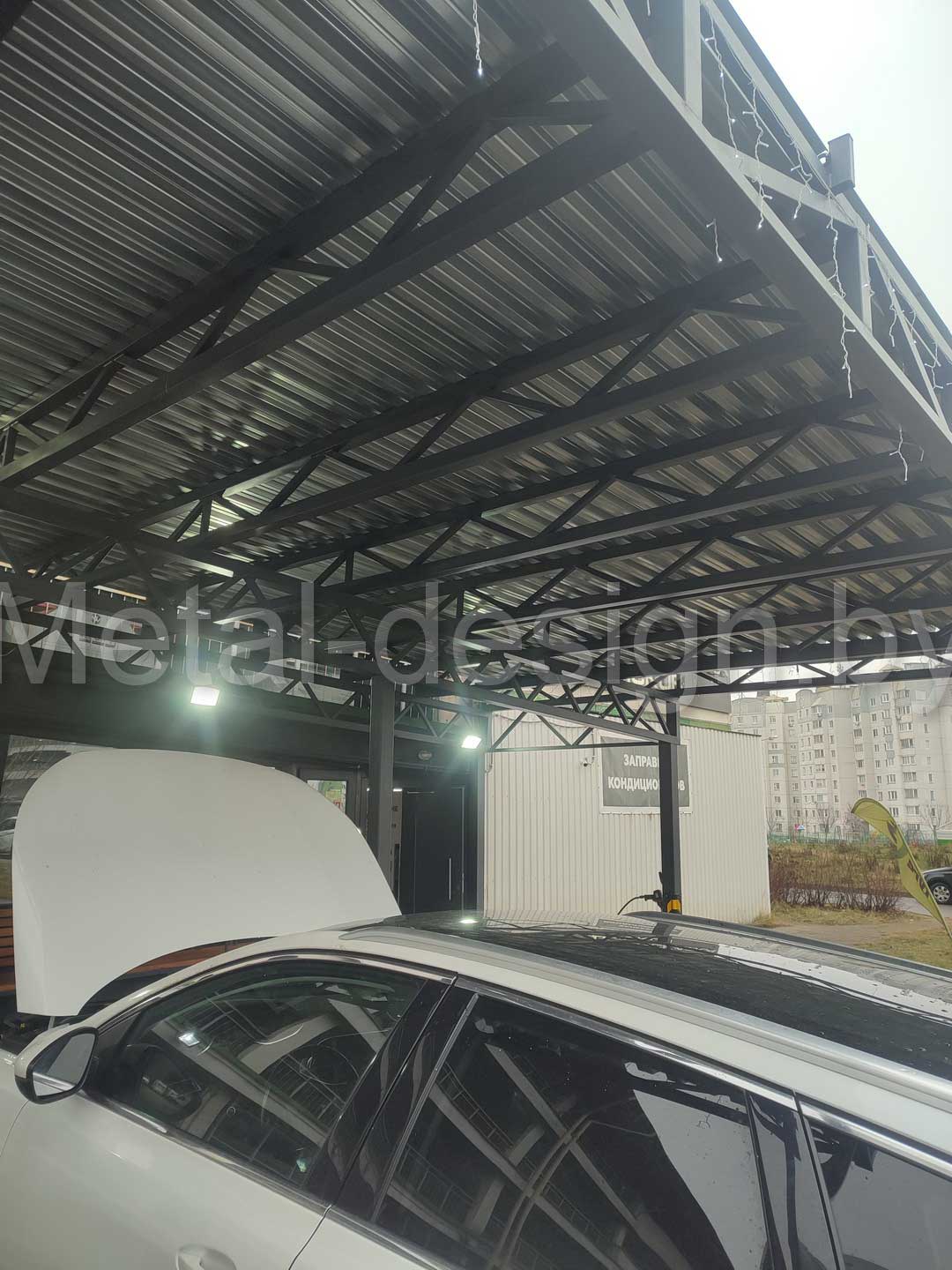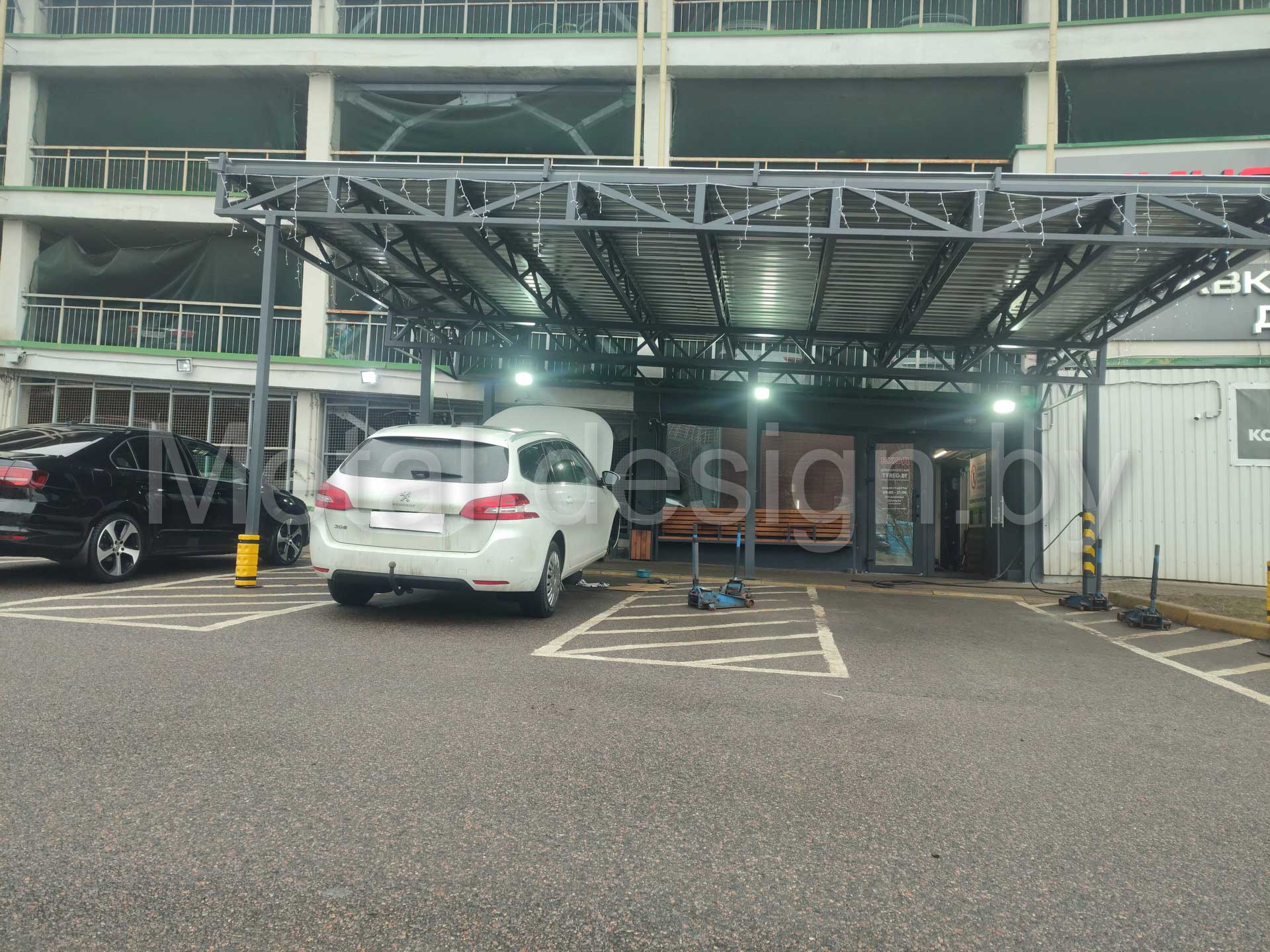 Главная / Наши работы / Навесы для автомобилей / Авто навес для СТО или шиномонтажа