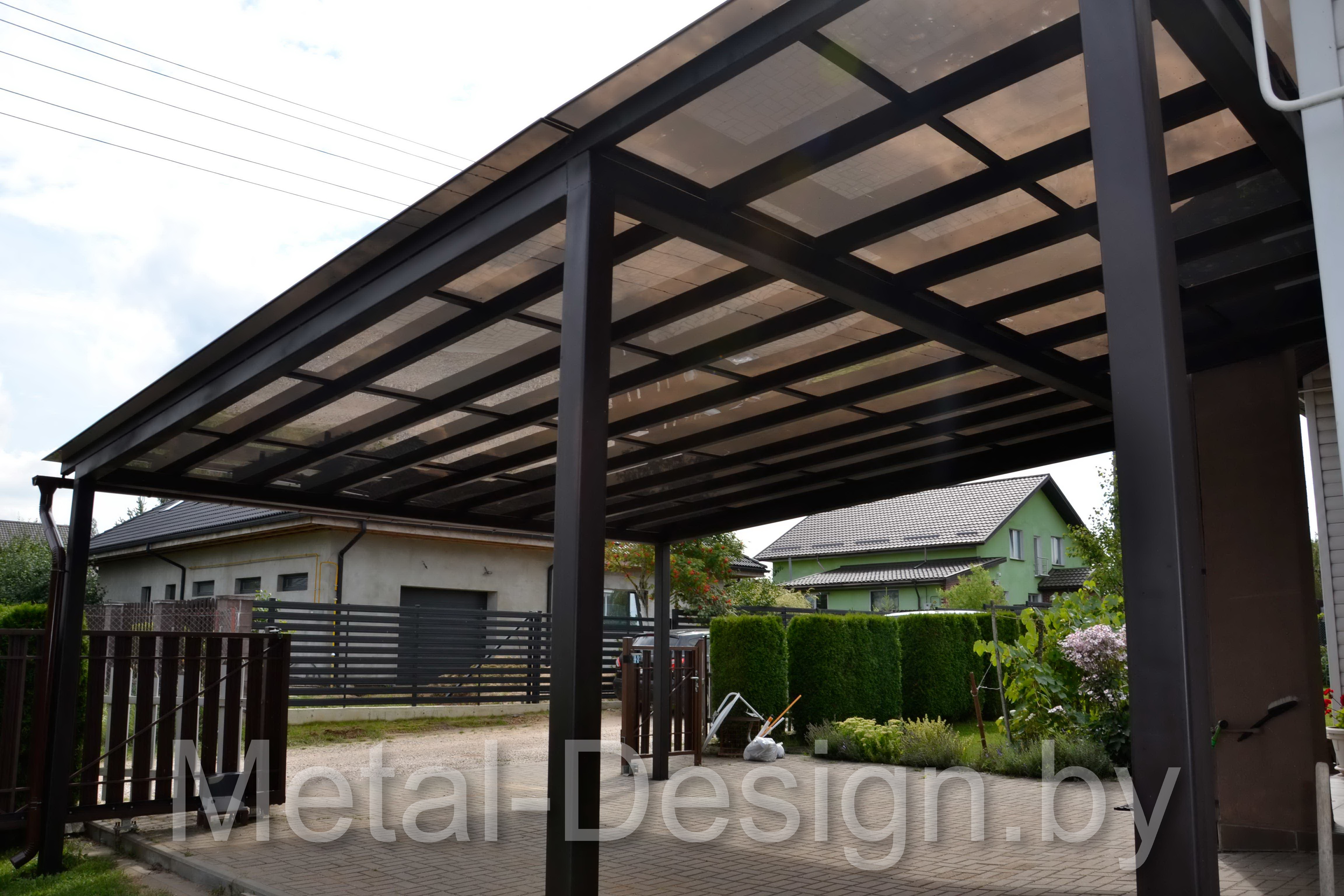 Были применены мощные элементы каркаса кровли, которые способны нести нагрузку, действующую на навес. При этом они позволяют обойтись без лишних столбов.