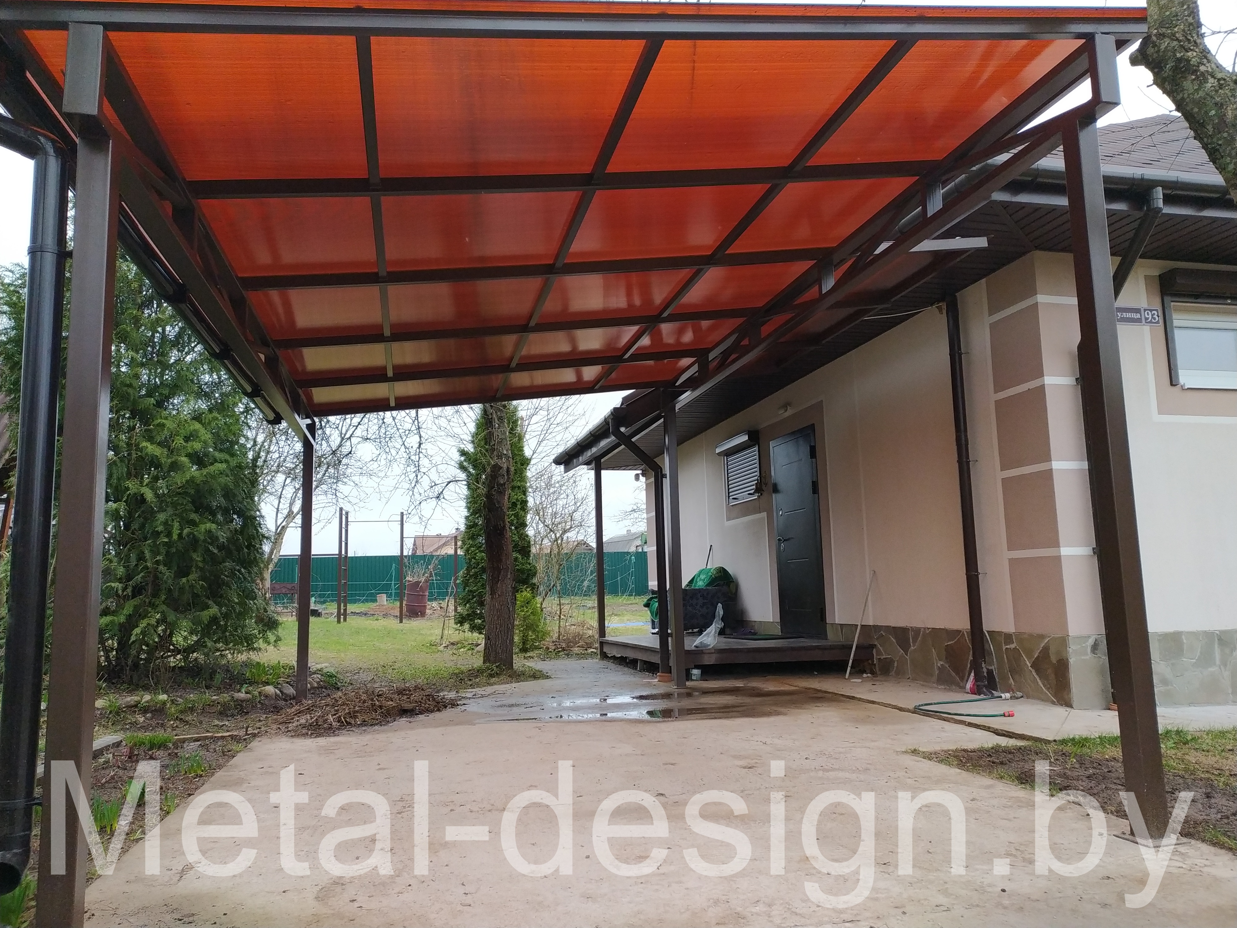 Использовался поликарбонат производства РБ, грунт и эмаль РБ, водосточная система РФ.