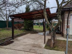 Сварные продольные фермы обеспечивают возможность установки навеса всего на четыре опоры.