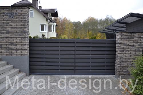 Производство и установка откатных ворот является одним из направлений работы компании «Металл-дизайн». Наши специалисты изготовят и установят автоматические ворота на заказ с учетом любых ваших пожеланий и впишут их в дизайн придомовой территории.