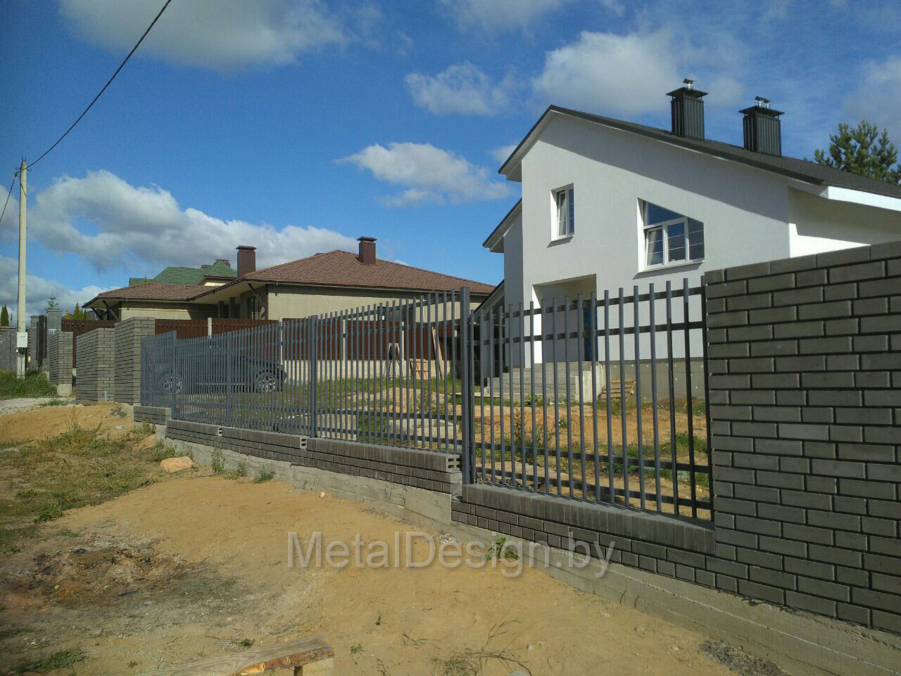 Главная / Наши работы / Сварные заборы и заборы из профлиста / Сварной забор на кирпичных столбах