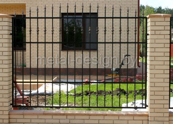 Сварной забор на кирпичных столбах