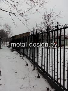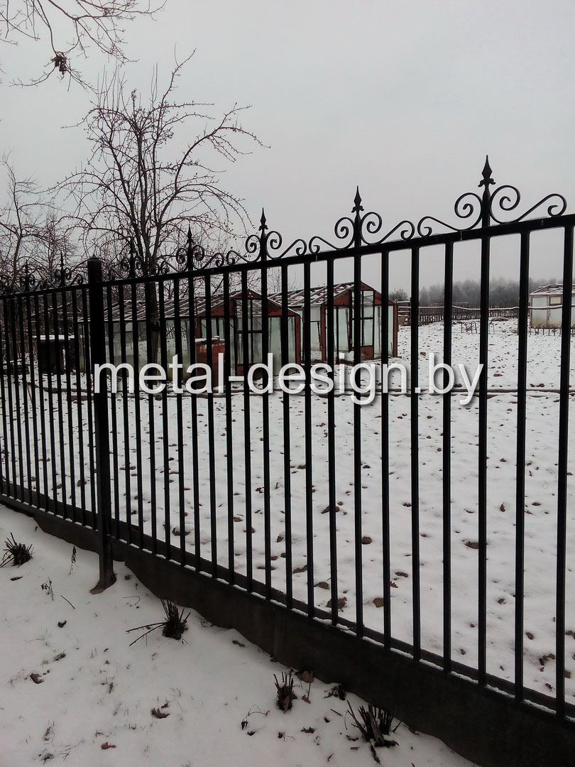 Главная / Наши работы / Сварные заборы и заборы из профлиста / Сварной забор с коваными элементами