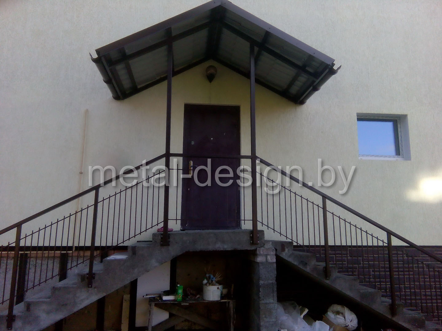 Главная / Наши работы / Входные группы / Навес над входом и ограждение лестницы