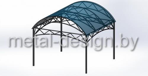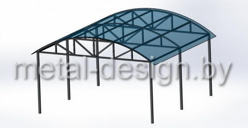 Навес для авто со сварными арочными фермами