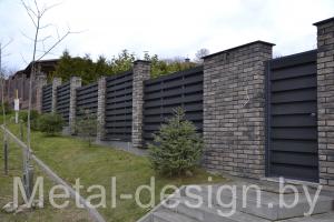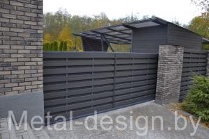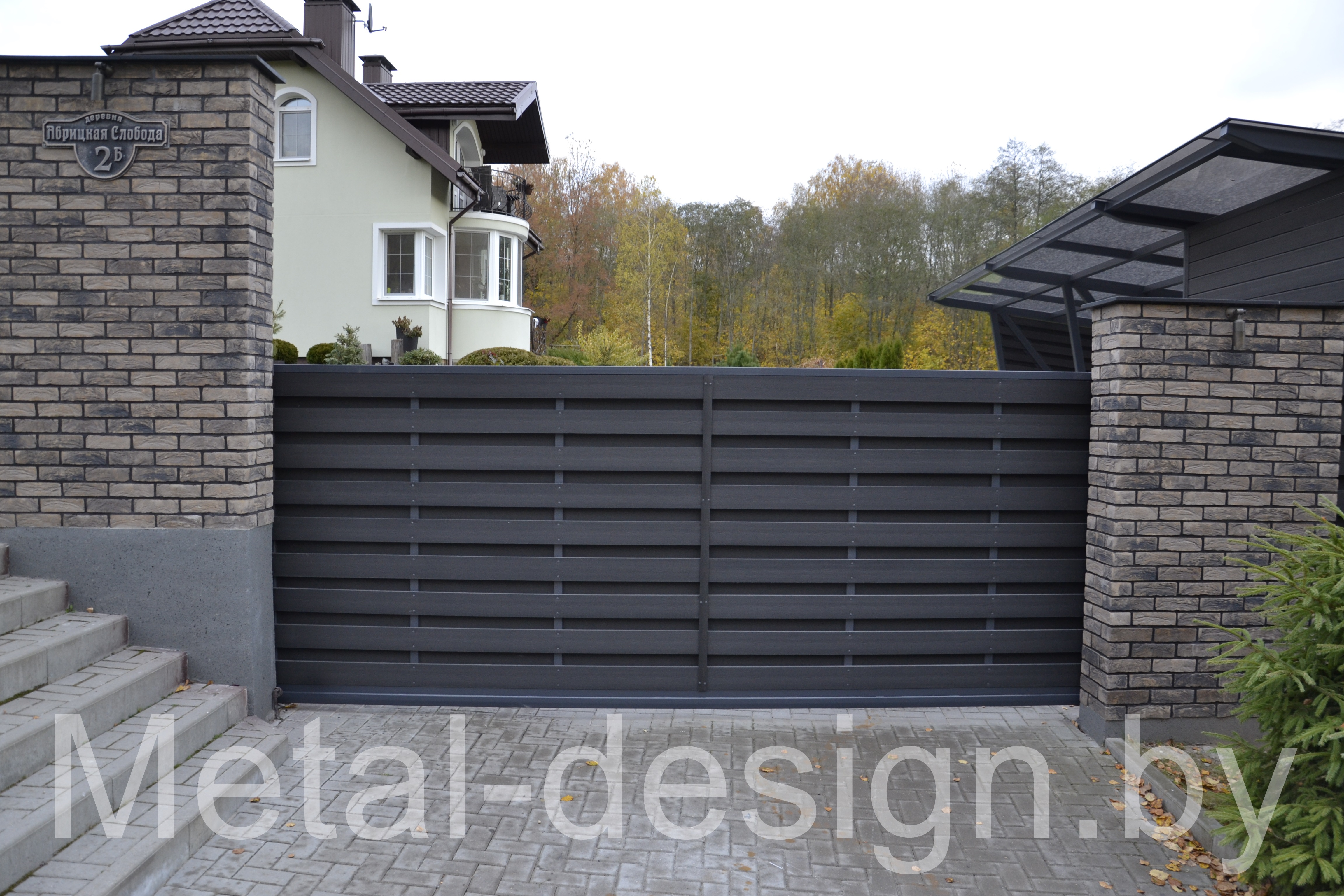 Створка откатных ворот заполнена горизонтально в шахматном порядке.