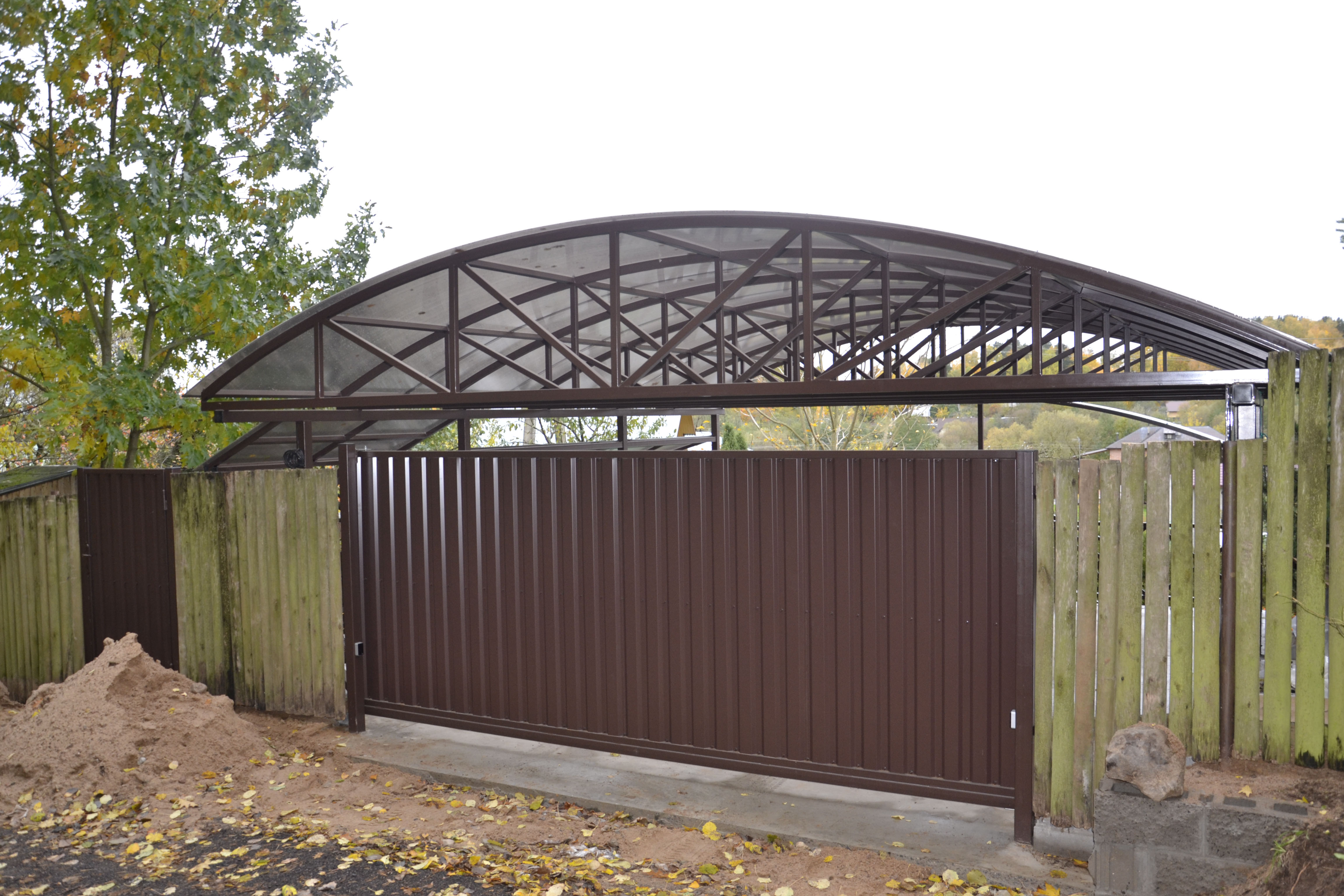 Данные откатные ворота выполнены из каркаса 60х40х2 мм. Направляющие для крепления профлиста сечением 40х20х2 мм.
