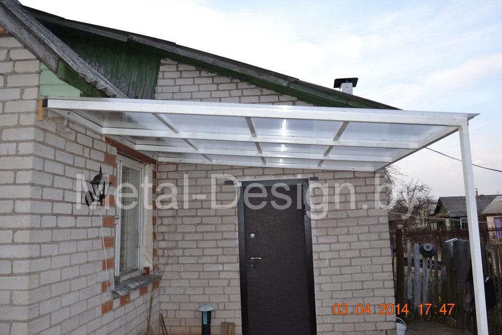 Главная / Наши работы / Входные группы / Навес над дверью из поликарбоната. Эконом вариант